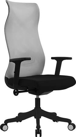 Irodai forgószék különleges formájú hálós háttámlával és formaöntött szivacspárnás ülőlappal.