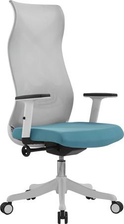 Irodai forgószék, világosszürke hálós háttámla, türkizkék ülőlap, fehér műanyag lábkereszt, "Avalon"