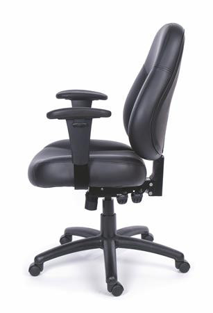 sokoldalúan használható exkluzív menedzserszék vastag, formázott szivacsozással az ülőfelületen és a háttámlán komfortos, ergonomikus kialakítással gázliftes magasságállítás állítható háttámla magasság állítható háttámla dőlésszög állítható ülőlap dőlésszög aszinkron mechanika kárpit: puha bonded bőr szín: fekete állítható magasságú karfával szállítjuk méretek: teljes magasság: 103-121 cm ülésmagasság: 45-58 cm ülésmélység: 52 cm ülésszélesség: 53 cm teherbírás: 135 kg