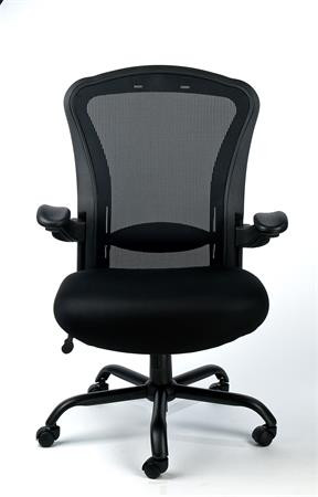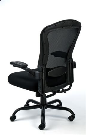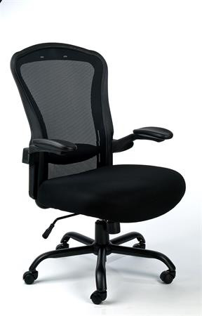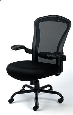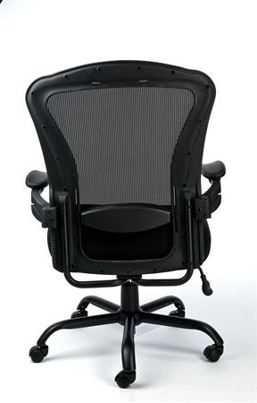 nagy teherbírású irodai szék vastag, ergonomikusan formázott szivacsozással és háttámla kialakítással erősített elemekkel gázliftes magasságállítás hintamechanikával kárpit: ülőfelület: mesh hálós szövet háttámla: feszített hálós szövet állítható karfával szállítjuk teherbírás: 180 kg