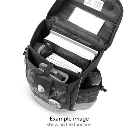 - 2 belső rekesz (A4-es méretű könyveknek megfelelő) + 1 órarend tároló + 2 oldalsó rekesz (esernyő + 0,7 literes palack részére).