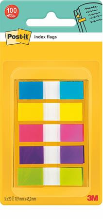 Jelölőcímke, műanyag, 5x20 lap, 12x43 mm, 3M POSTIT, vegyes leírása