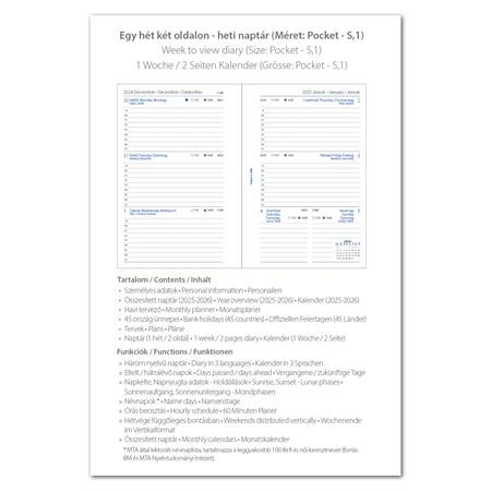 Kalendárium betét, tervező Filofaxhoz, A5, heti, 1 hét/2 oldal, 2025 leírása