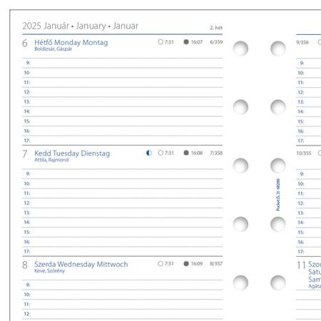 Kalendárium betét, tervező Filofaxhoz, A5, heti, 1 hét/2 oldal, 2025