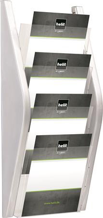 Katalógustartó, fali, A4, 4 rekeszes, HELIT, ezüst