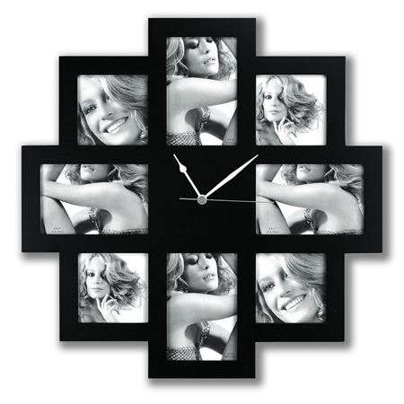Képkeret, galéria, műanyag, 4 db 10x15 cm, 4 db 10x10 cm, órával, "Zep Taranto", fekete