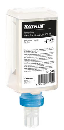 Kézfertőtlenítő gél, alkoholos, 500 ml, szenzoros adagolóba, KATRIN, "Touchfree"