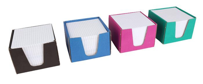 -nem ragasztott, kockás jegyzetlapok tartóban