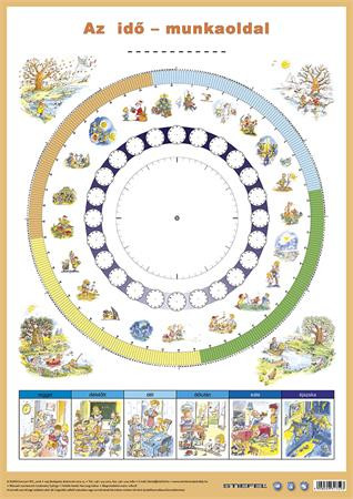A kicsiknek igen nehéz megérteni az elvont időfogalmakat. Ebben segít játékosan ez a tanulói munkalap. Az ábra a főoldalon magyarázó feliratokkal tanulmányozható, míg a hátoldali munkaoldal felirat nélküli.