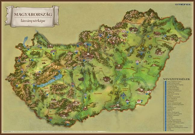 A Magyarország látványtérkép részletesen kidolgozott grafikával mutatja be az ország történelmi nevezetességeit, kastélyait, várait. Remek dekorációul szolgál, emellett belföldi utazások, kalandozások megtervezéséhez is ideális. A térképen hazánk megyéi, megyeszékhelyei, nagyobb folyói és tavai is szerepelnek. A dekoratív és informatív Balaton és környéke térképen minden szükséges információt megtalál, ami egy balatoni utazáshoz szükséges lehet.
