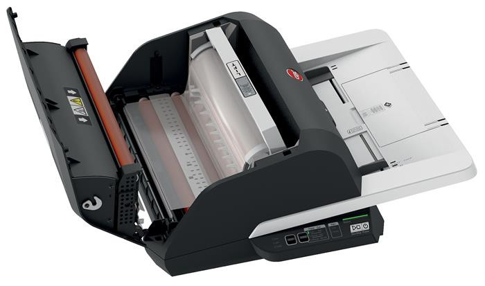 Lamináljon a világ első automata laminálógépével és töltsön 98%-kal kevesebb időt a laminálással! automatikusan laminál 30 A4 vagy A3 méretű dokumentumot egyszeri betöltésre automatikus lapigazítással a tökéletesen lelaminált dokumentumokért kézi adagolási lehetőség a vastagabb vagy speciális formájú dokumentumokhoz 250 g-os papírsúlyig intuitív vezérlőpanellel, melyen könnyen kiválasztható az automata vagy manuális beállítási mód működési módok: - automatikus laminálás/automatikus vágás 65-120 g hagyományos papír méretek esetén - manuális laminálás/automatikus vágás 120 g-tól hagyományos papír méretek esetén - manuális laminálás/manuális vágás nem hagyományos méretek (csillag, kör, stb.) esetén fényjelzés a laminálófólia kifogyása esetén intelligens energiatakarékos üzemmód egyszerűen cserélhető fóliatekerccsel használható 1 db ajándék fóliatekerccsel (75 mikron) 2 év garancia