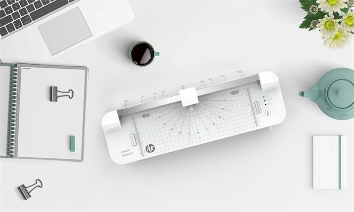 Laminálógép, beépített vágógéppel, A3, 80-125 mikron, HP "Onelam Combo", fehér