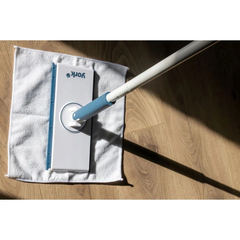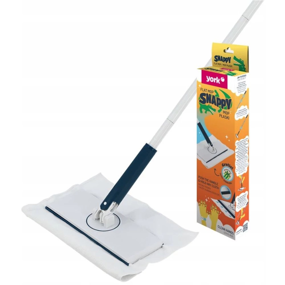 York Snappy lapos felmosó sokoldalú eszköz bármilyen felület tisztítására. Az univerzális felmosó 360°-ban elforgatható fejjel van felszerelve. A mozgatható fejre könnyedén felhelyezhet bármilyen típusú ruhát, száraz és eldobható nedves törlőkendőket egyaránt. A könnyű, lapos felmosó könnyen befér a bútorok alá, és összegyűjti a port a sarkokból és a szűk résekből.