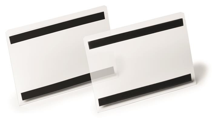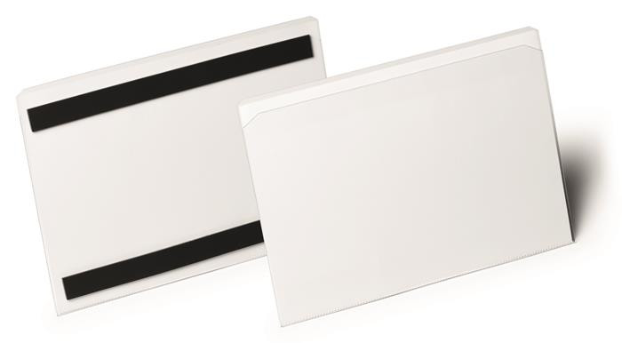 Átlátszó PET merev fóliából készült irattartó zseb két mágnescsíkkal a hátoldalon.