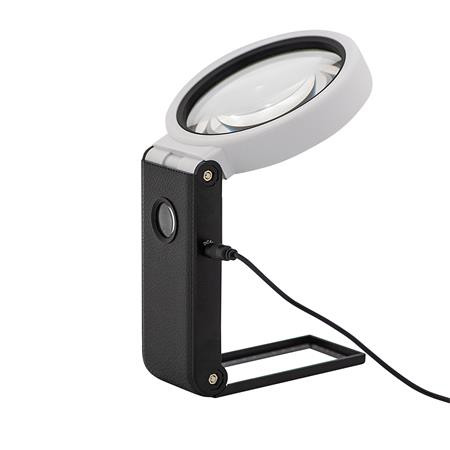 Nagyító, 90 mm, kihajtható állvánnyal, LED fénnyel, WEDO, fekete/fehér