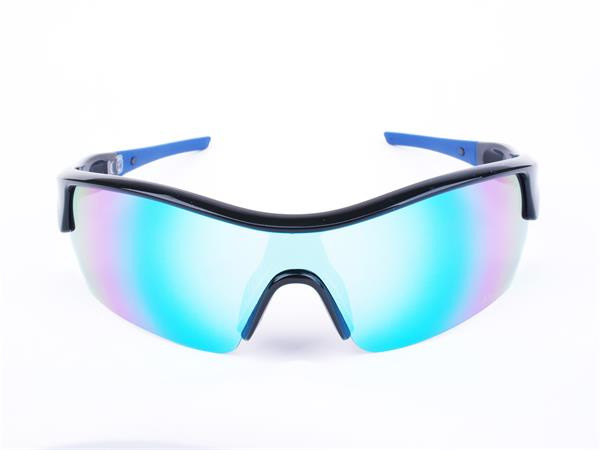 Sportnapszemüveg füstszínű polarizált lencsével, fekete műanyag kerettel, színátmenetes lencsebevonattal.