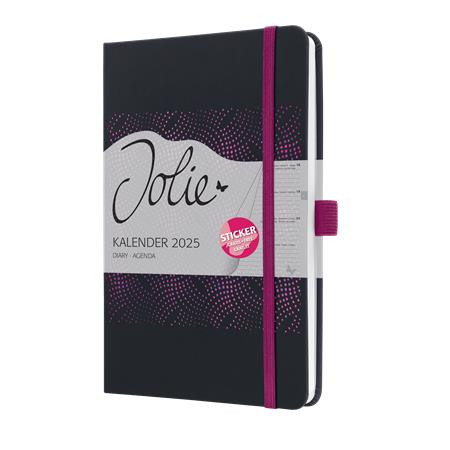 Naptár, A5, heti, 2025, kemény boritó, SIGEL "Jolie", fekete-pink