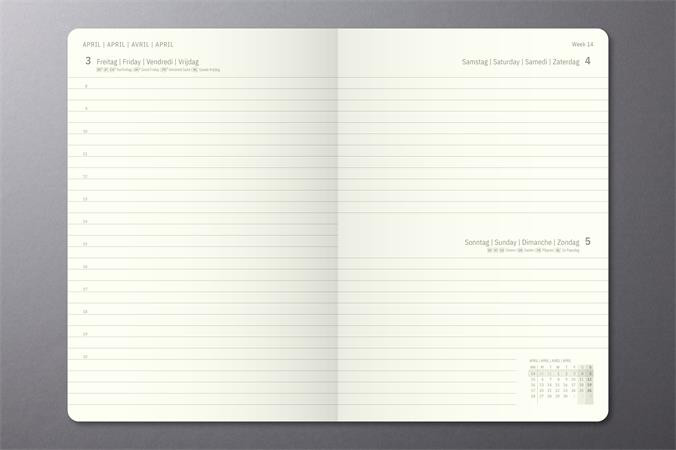 -napi beosztás ( 1 oldalon 1 nap; szombat/vasárnap egy oldalon)