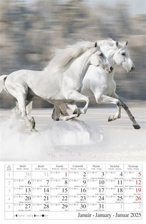 -naptár rész: magyar, angol, német nyelven, magyar ünnepek és névnapokkal, napkelte, napnyugta és holdállás feltüntetésével