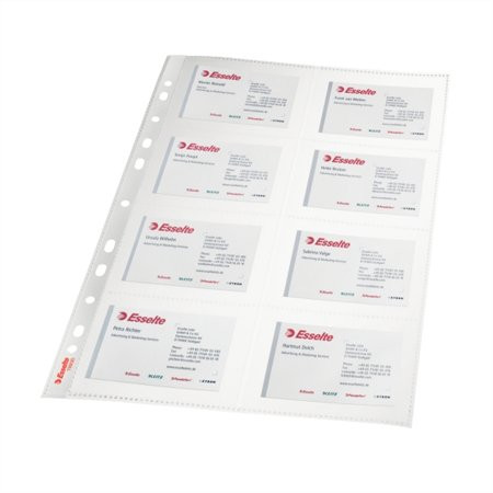 Névjegytartó genotherm, lefűzhető, A4, 105 mikron, víztiszta, 16 férőhelyes, ESSELTE