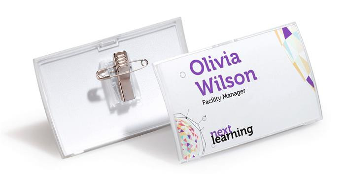 Névkitűző, csíptetővel és tűvel, PP, 40x75 mm, DURABLE "CLICK FOLD" leírása