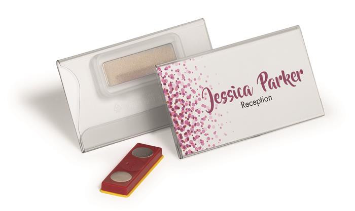 Névkitűző, mágnessel, elfordulásgátlóval, 75x40 mm, DURABLE leírása