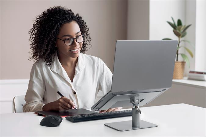 Az univerzális asztali laptopállvánnyal kényelmes megtekintési magasságba állíthatja laptopját, miközben csökkenti az asztali zsúfoltságot.