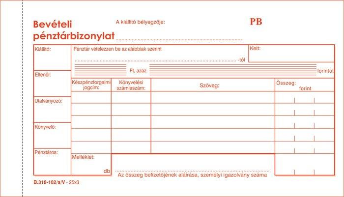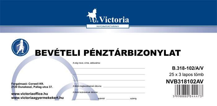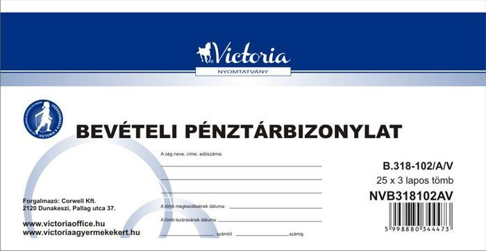 Nyomtatvány, bevételi pénztárbizonylat, 25x3, VICTORIA PAPER "B.318-102", 10 tömb/csomag leírása