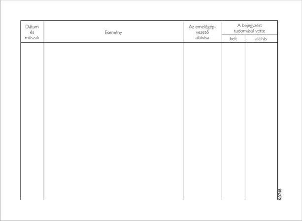 Nyomtatvány, emelőgépnapló, 25 lap, A5, VICTORIA PAPER, 20 tömb/csomag