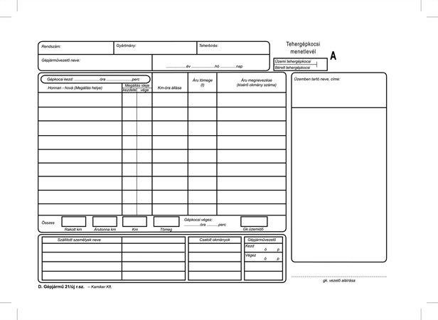 Nyomtatvány, menetlevél, tehergépjármű, 100 lap, A4, fekvő, VICTORIA PAPER, "D.GÉPJ.21.", 10 tömb/csomag leírása