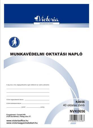 Nyomtatvány, munkavédelmi oktatási napló, 40 oldal, A4, VICTORIA PAPER, 10 tömb/csomag leírása