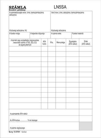 Nyomtatvány, számlatömb, egy ÁFÁs, 50x3, A5, VICTORIA PAPER, "B.13-374", 10 tömb/csomag leírása