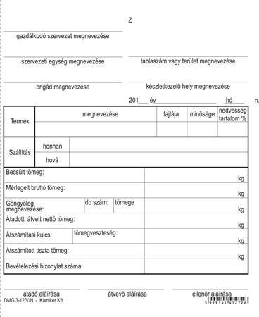 Nyomtatvány, termékkísérő jegyzék, 25x4, VICTORIA PAPER "DMG 3-12", 10 tömb/csomag leírása