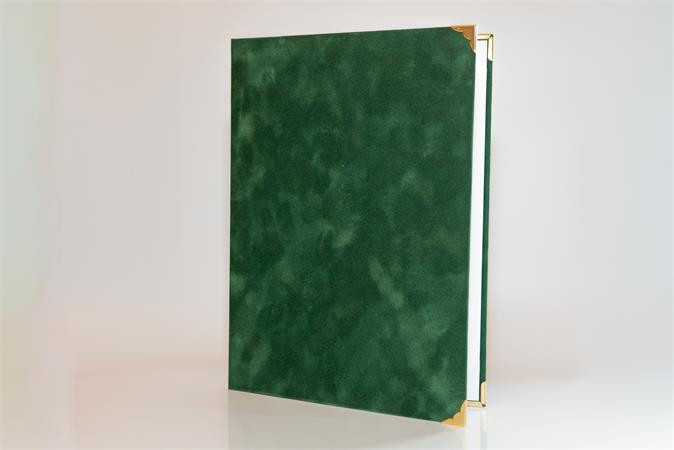 Oklevéltartó, A4, exkluzív, plüss, 4 fém sarokkal, zöld leírása