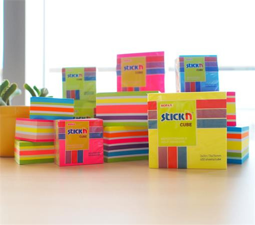 Öntapadó kockatömb, 76x76mm, 400 lap, STICK N, neon szivárvány leírása