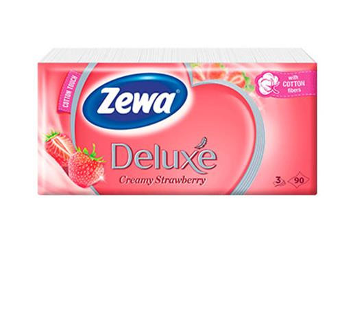Papír zsebkendő, 3 rétegű, 90 db, ZEWA "Deluxe", eper illatú