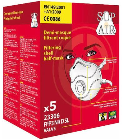 Porálarc, FFP3, részecskeszűrő paneles, szeleppel "Supair 23306"