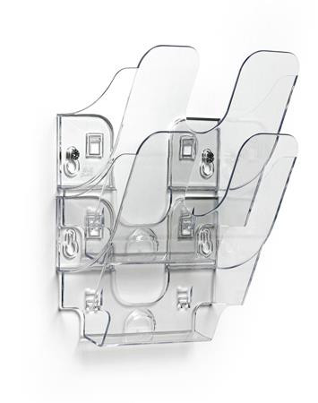 Prospektustartó modern designban A5-s dokumentumok bemutatására. -beltéri használatra -ideális a bejáratnál, kiállító helyeken elhelyezett tájékoztatókhoz -műanyag -álló A5-s dokumentumokhoz -átlátszó színben -bővíthető 6 kg teherbírásig -2 rekeszes -külső méret: 180x360x105 mm (szé x ma x ho) -belső méret: 180x250x23 mm (szé x ma x ho) Itt megtekinthető és letölthető a termékadatlap. Itt megtekinthető és letölthető a környezetvédelmi adatlap. Gyártó/első EU forgalmazó elérhetősége:  DURABLE Hunke & Jochheim GmbH & Co. KG Westfalenstrasse 77-79, D- 58636 Iserlohn, Germany info@durable.de www.durable.de