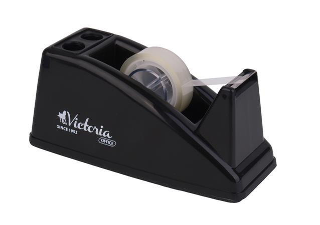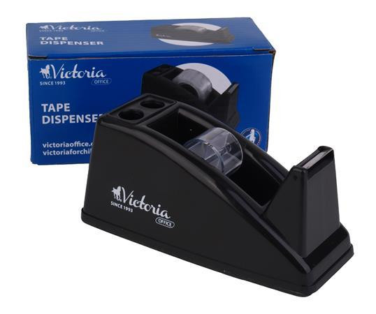 Az átlátszó ragasztószalagra szinte mindenhol szükség lehet, legyen az az otthoni íróasztal, vagy egy irodai munkahely. A Victoria fekete adagolója ideális választás mindkét esetben. Praktikus mérete ellenére meglehetősen súlyos, így elég stabil ahhoz, hogy akár egy kézzel is lehúzzunk a ragasztószalagból egy darabot, és a kialakított recés vágó él segítségével le is szakítsuk azt anélkül, hogy az adagoló elcsúszna vagy elmozdulna. 19 vagy 25 mm széles ragasztószalaggal használható. Ragasztószalag nélkül szállítjuk. Itt megtekinthető és letölthető a