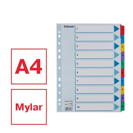 Regiszter, karton, A4, 1-10, ESSELTE "Mylar"
