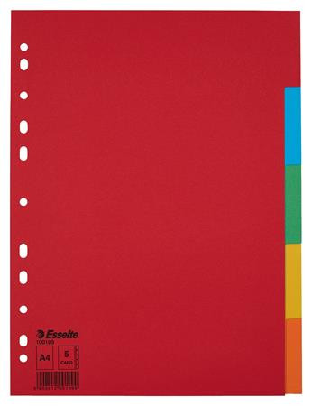 Regiszter, karton, A4, 5 részes, ESSELTE "Economy", színes