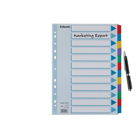 Regiszter, laminált karton, A4, 12 részes, ESSELTE "Mylar"
