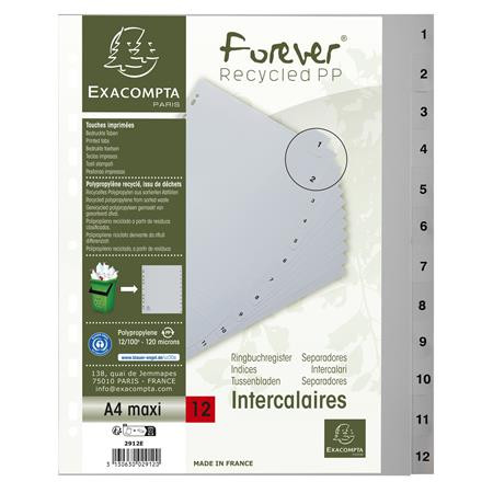 Regiszter, műanyag, A4+, 1-12, EXACOMPTA, szürke