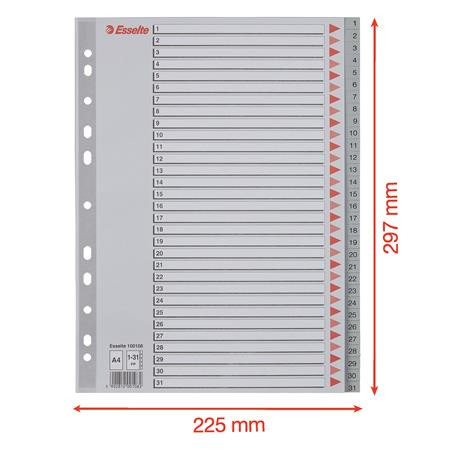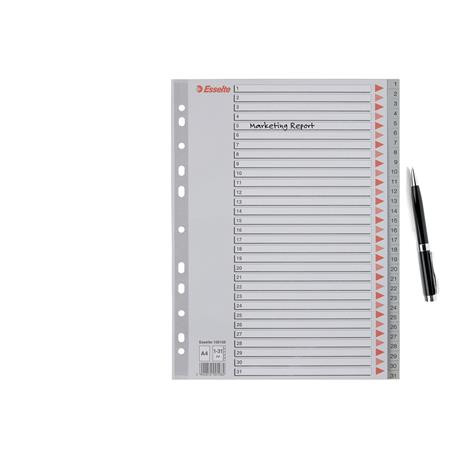 Regiszter, műanyag, A4, 1-31, ESSELTE, szürke