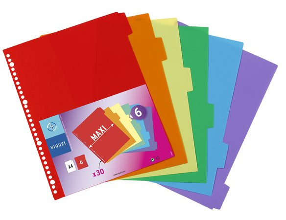 Regiszter, műanyag, A4 Maxi, 6 részes, VIQUEL