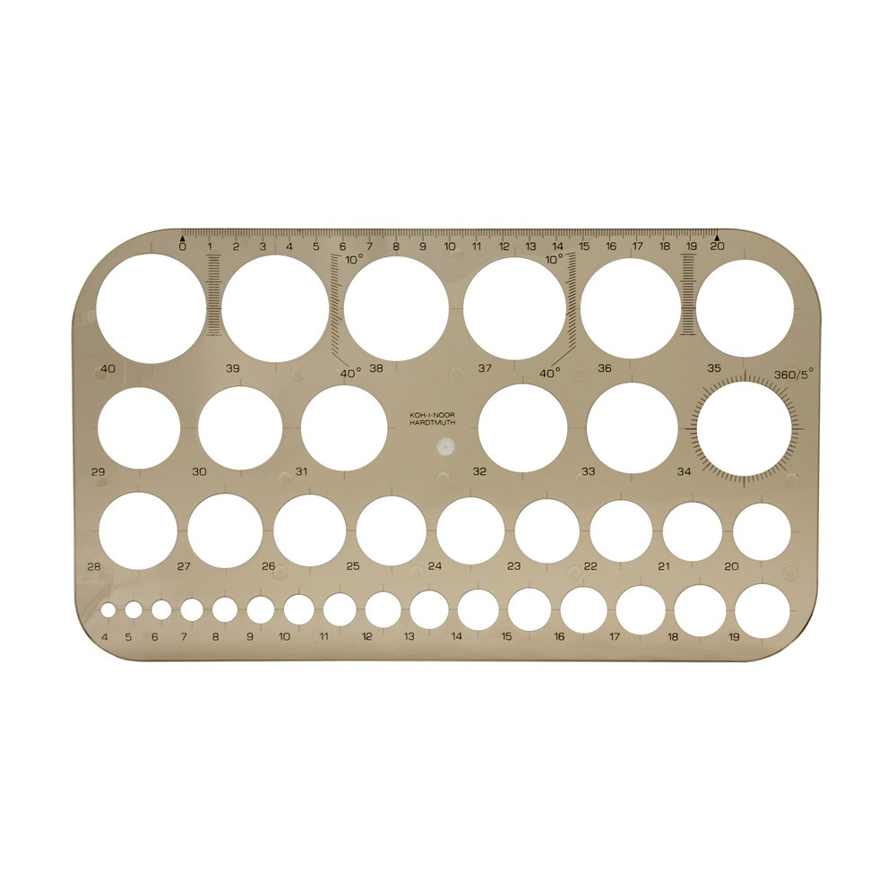 Átlátszó, műanyag körsablon, műszaki rajzok készítéséhez. 30 db/doboz. Katalóguskód: 67168