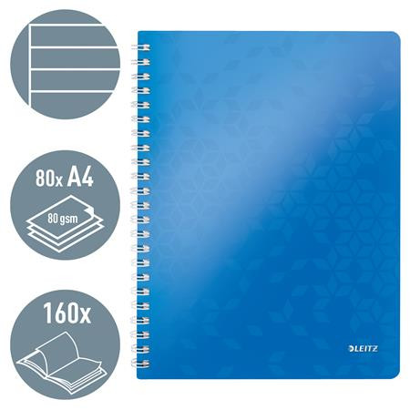 Spirálfüzet, A4, vonalas, 80 lap, LEITZ "Wow", kék