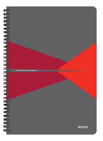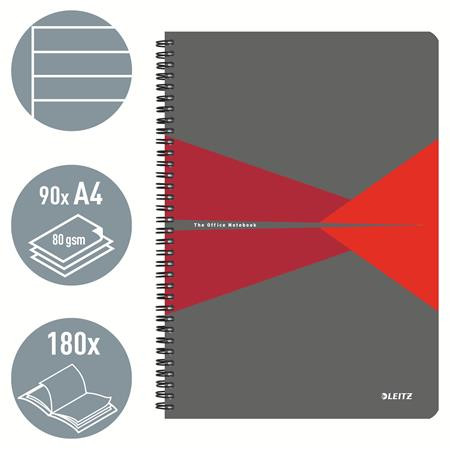 Spirálfüzet, A4, vonalas, 90 lap, PP borító, LEITZ "Office", szürke-piros