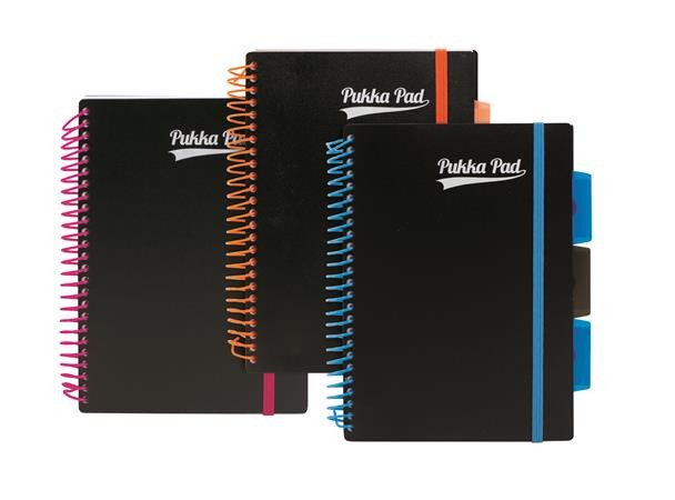 Spirálfüzet, A5, vonalas, 100 lap, PUKKA PAD, "Neon black project book"