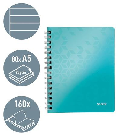 Spirálfüzet, A5, vonalas, 80 lap, LEITZ "Wow", jégkék leírása